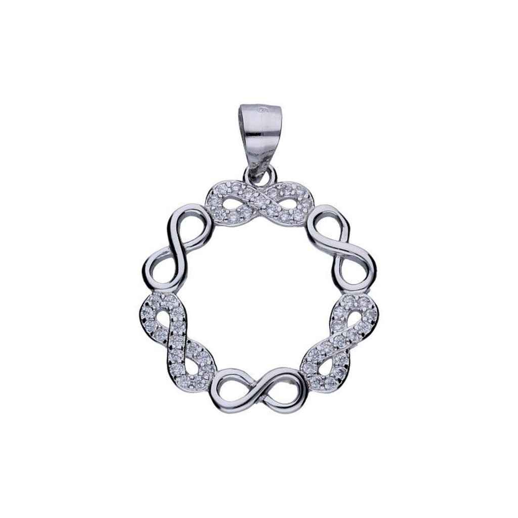RÓDIUMMAL BEVONT 925-ÖS EZÜST MEDÁL, VÉGTELEN MOTÍVUMOK, FEHÉR CIRKÓNIÁK, MÉRETEK 19mm X 19mm AKASZTÓ NÉLKÜL.