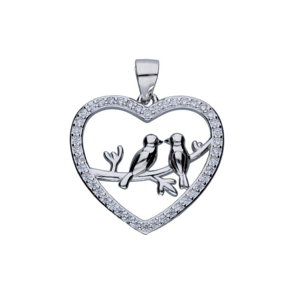 MEDÁL, SZÍV, KÉT MADÁR EGY ÁGON, 925-ÖS EZÜST, RÓDIUMMAL BEVONVA