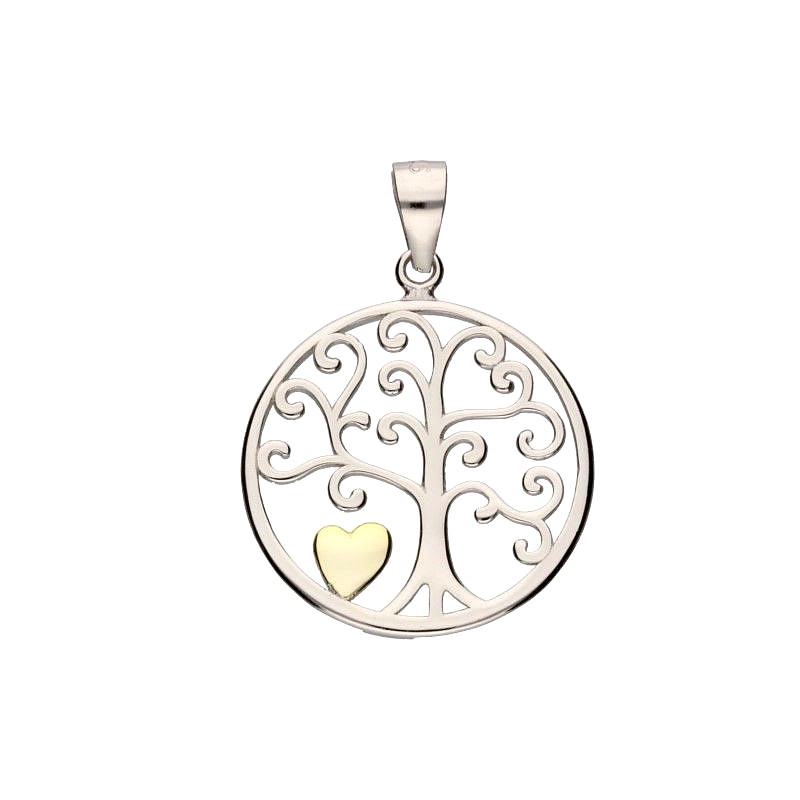 Medál, 925-ös ródiummal bevont ezüst, szív, életfa, 20mm átmérőjű.