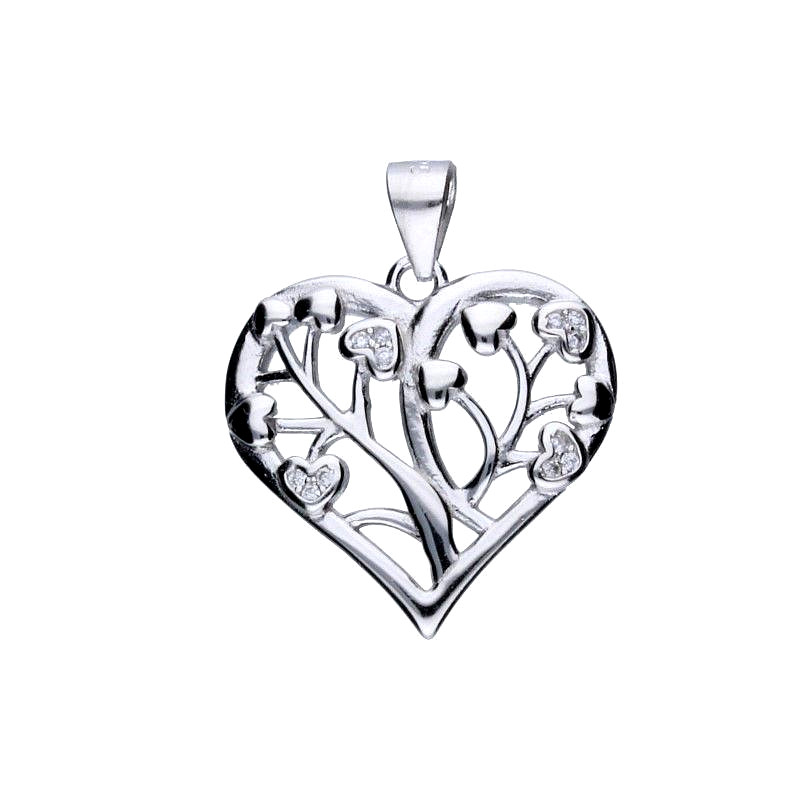 Szív medál, 925-ös ezüst Ródiummal bevonva, életfa, fehér cirkónium, szív méretei akasztó nélkül 20mm X 20mm.