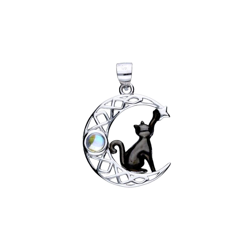 Medál, 925-ös ezüst, ródiummal bevonva, opál drágakő, cica, hold, csillag, medál méretei akasztó nélkül 17mm X 19mm.