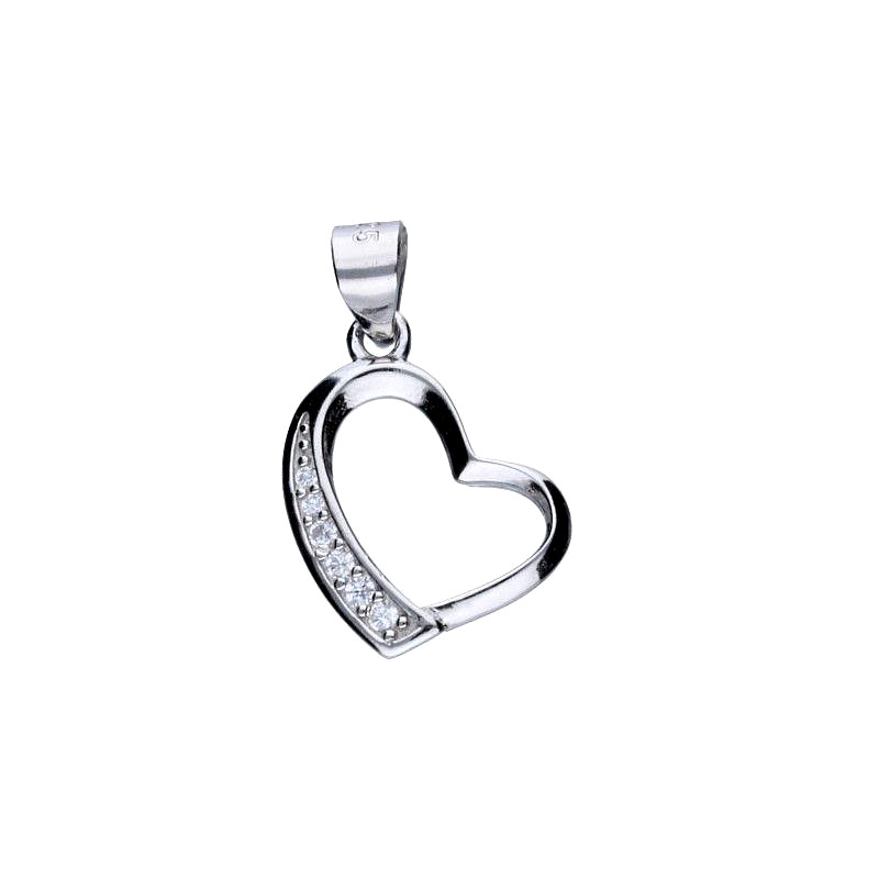 Szív medál, 925-ös ródiummal bevont ezüst, fehér cirkóniumokkal, medál méretei akasztó nélkül 13mm X 14mm.