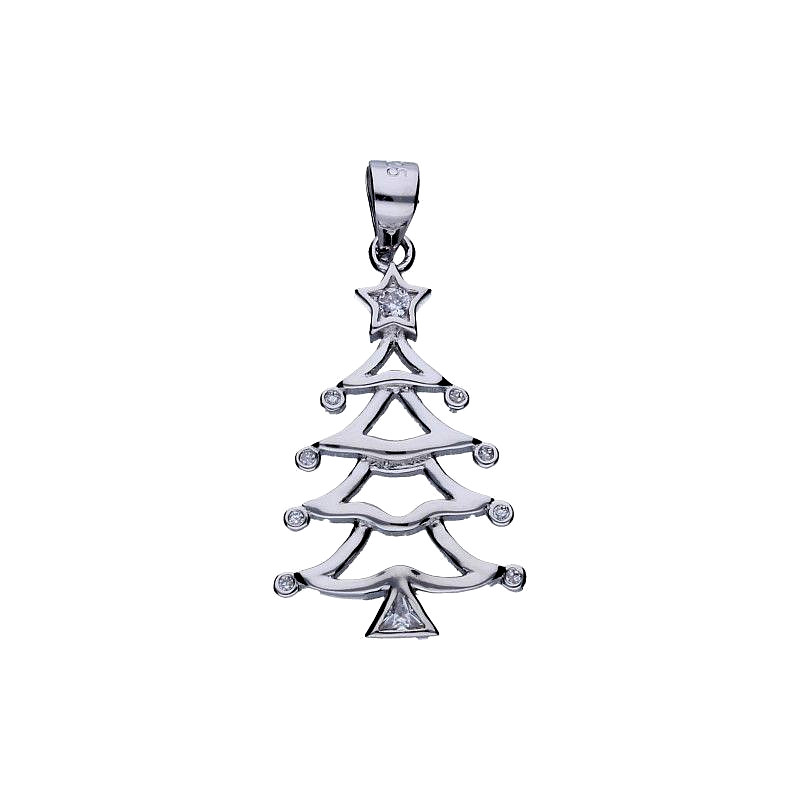 925-ÖS EZÜST, RÓDIUMMAL BEVONT KARÁCSONYFA, 25 MM, AKasztó nélkül