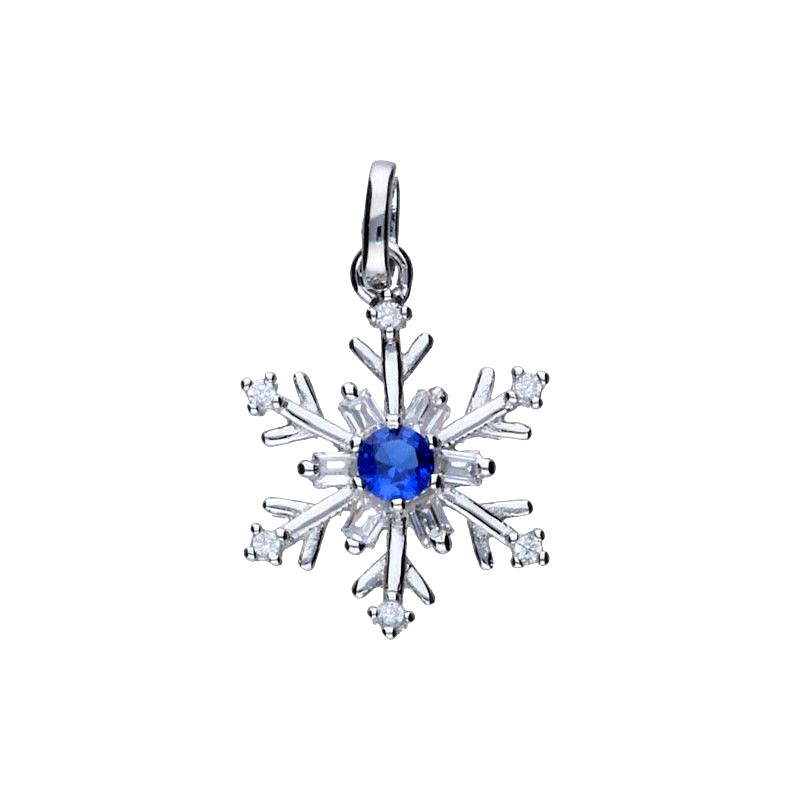MEDÁL, 925-ÖS EZÜST, RÓDIUMMAL BEVONVA, FEHÉR CIRKÓNOK ÉS ZAFÍR CIRKÓN, CSILLAG, HÓPEHELY, MÉRETEK 14mm X 14mm.
