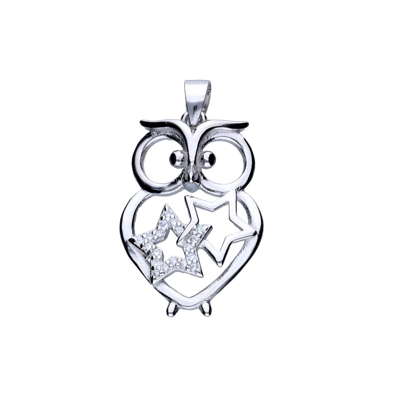 Medál, 925-ös ródiummal bevont ezüst, fehér cirkóniumokkal, bagoly, méretek 23mm X 16mm AKASZTÓ nélkül.